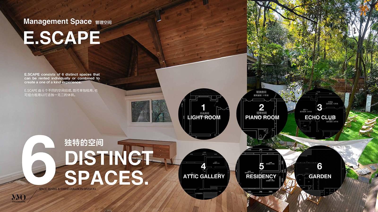 是一个集艺术,设计,时尚,音乐和表演于一体的实验室。空间位于上海市武康路,在当地语境下支持年轻创作者,国际社团,艺术家驻留,文化活动和艺术现场等项目。E.SCAPE艺术空间致力于展示和探索创造性事件的多元空间,面向公众的叙事,并绅士起如花塑造当代文化。